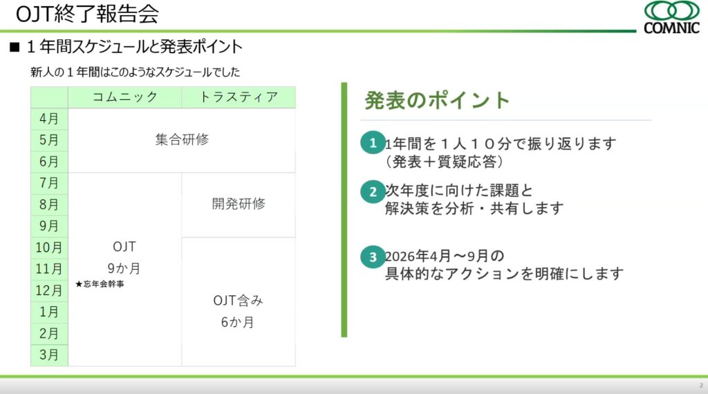 去る3月末に2025年度入社OJT終了報告会が行われました。